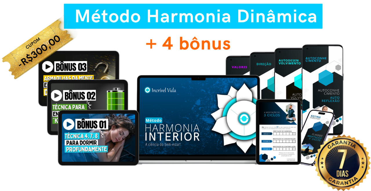 O método Harmonia interior é justamente para ajudar pessoas que estão passando por ansiedade e estresse e querem encontrar paz interior e bem-estar. O curso irá mostrar, não só as causas, mas como a ansiedade e estresse se instalam de forma invisível na vida das pessoas e como resolvê-los indo direto na raiz do problema.